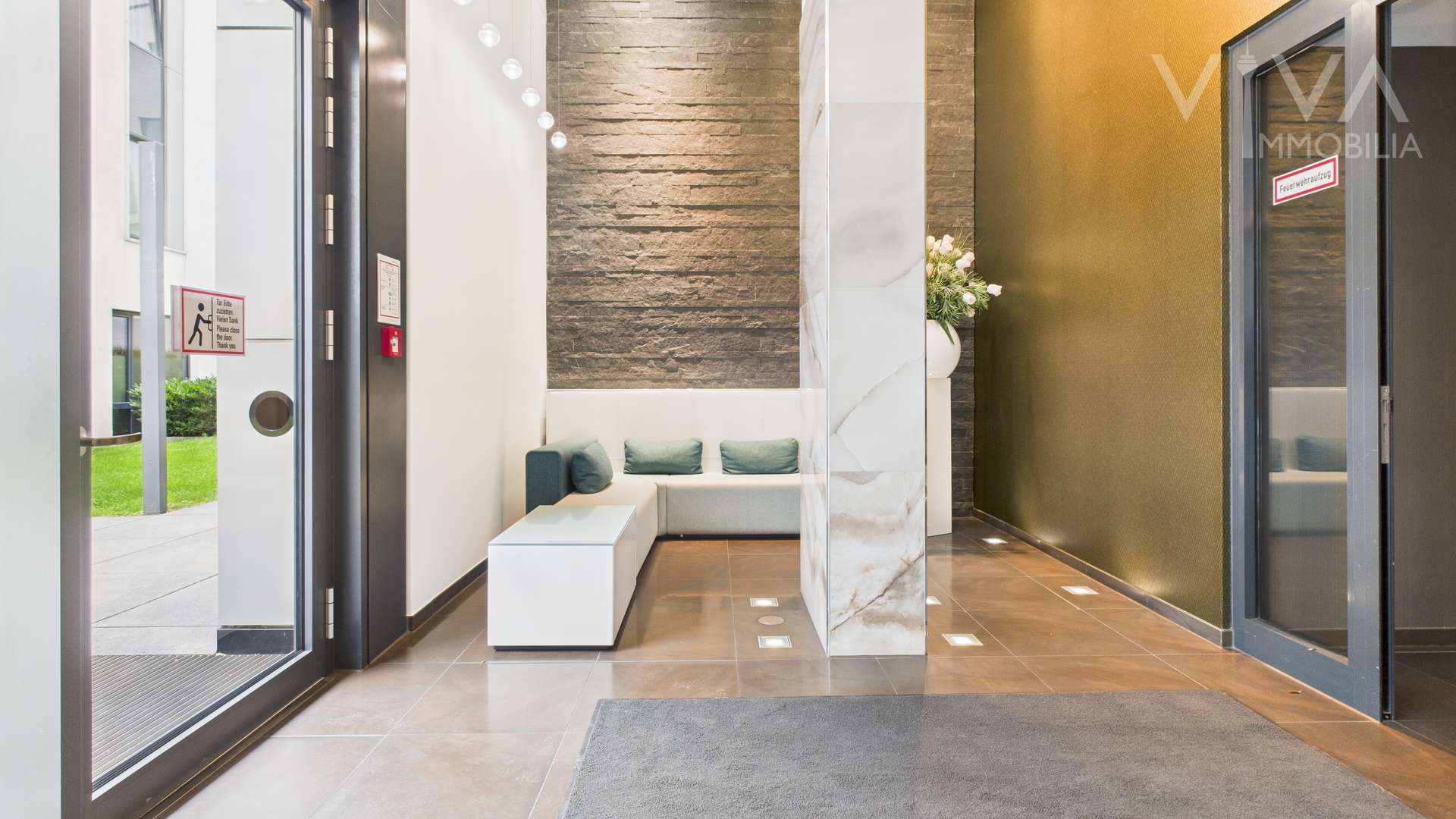 Das elegante Entrée und der diskrete Concierge-Service sorgen für ein repräsentatives Ankommen in diesem eindrucksvollen 18-geschossigen Wohnensemble.