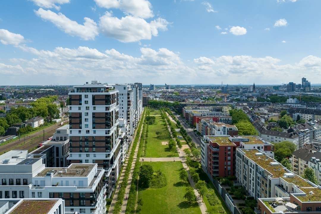 Die Umgebung bietet alles, was urbanes Leben angenehm und komfortabel macht: angesagte Restaurants wie die Bar Olio, stilvolle Beautystudios, Supermärkte (u.a. Rewe), moderne Fitnessstudios wie das Evo, sowie Kitas und Schulen – alles bequem zu Fuß erreichbar.