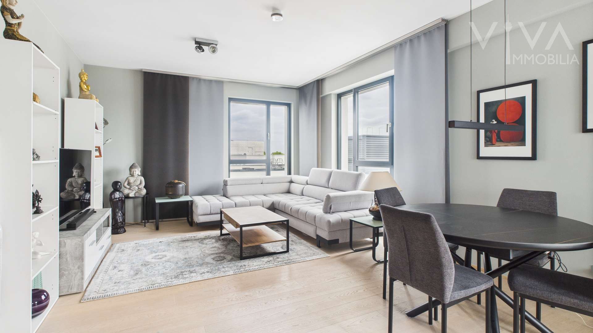 Auf ca. 96 m² bietet diese hochwertig konzipierte Wohnung eine harmonische Verbindung aus klaren Linien, edlen Materialien und modernem Wohnkomfort – ein stilvolles Zuhause mitten in Düsseldorf.
