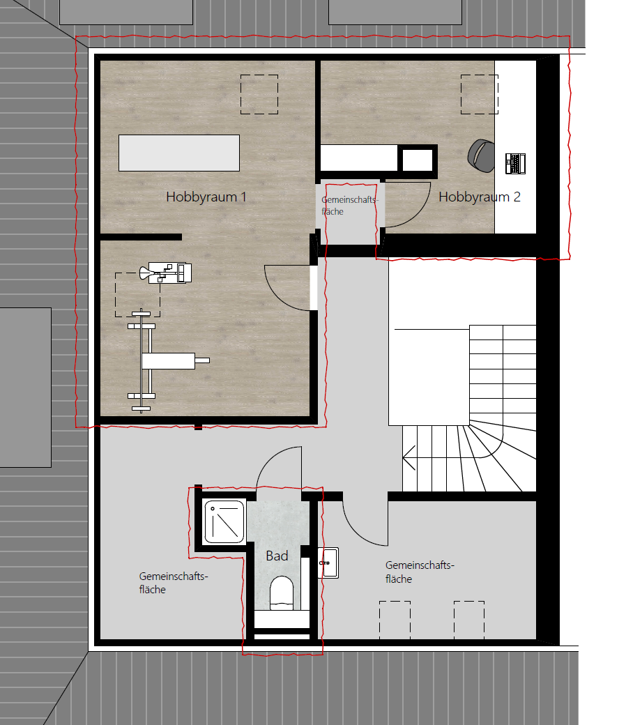 Die markierte Spitzbodenfläche ist als Nutzfläche ausgewiesen und gehört offiziell zum Sondereigentum der Wohnung. Sie Aufgrund ihrer Größe und Vielseitigkeit sorgt die Nutzfläche für einen spürbaren Mehrwert. Daher haben wir diese aus anzeigetechnischen Gründen zu einem Viertel mit in die Wohnfläche integriert!