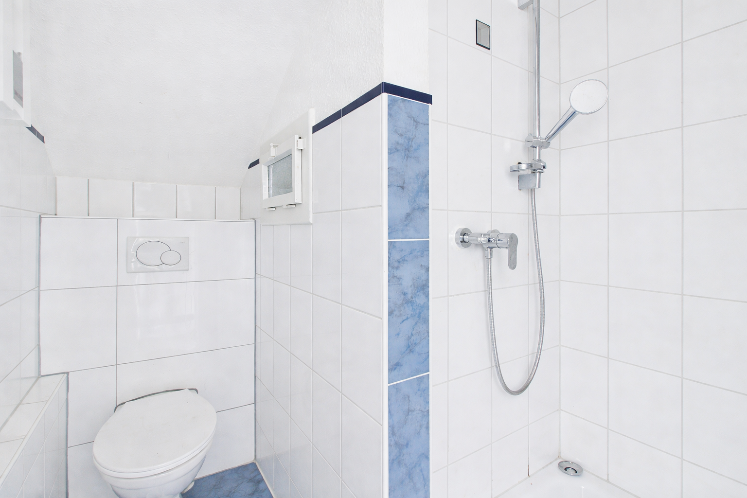 Das Tageslicht-Duschbad wurde 2023 erneuert. Ergänzend dazu befindet sich in der separat begehbaren Nutzfläche im Dachgeschoss ein weiteres, kleines Duschbad, was zusätzlichen Komfort schafft.
